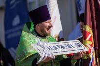 На площади состоялась торжественная церемония, в ходе которой была освящена символическая адресная табличка с новым названием улицы.