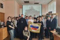 Отец Димитрий произнёс слова о верности, жертвенности и духовном подвиге православных русских воинов-матросов крейсера "Варяг", патриотизме русского человека и готовности к защите своего Отечества.