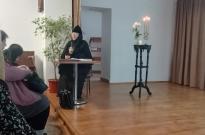 Перед участниками встречи выступила настоятельница Свято-Преображенского женского монастыря на реке Угре игумения Анастасия (Мордмиллович), рассказавшая о семейном укладе, подробностях воспитания, взросления, духовной жизни Великого Князя Сергия Александровича, о его семье. Выступление вызвало большой интерес у слушателей и глубочайшее уважение к выдающемуся человеку, до своего последнего вздоха верно служившего Царю и Отечеству.