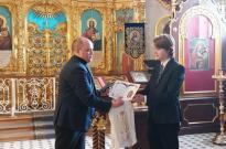От имени Начальника Российского Имперского Союза-Ордена грамоту и памятные призы вручил и.о. начальника Санкт-Петербургского отдела РИС-О А.А. Бертош. В награждении принимал участие директор Центра духовной культуры и образования Василеостровского благочиния Санкт-Петербургской епархии, иерей Сергий Мороко, который поблагодарил Арсения за активную деятельность и тоже поощрил его памятными подарками, в числе которых было Священное Писание. В завершение мероприятия было вручено благодарственное письмо педагогу, под руководством которого готовилась работа на конкурс – Сысоевой Елене Анатольевне, методисту Василеостровского благочиния Санкт-Петербургской епархии, методисту ГБОУ Гимназия № 642 «Земля и Вселенная» Василеостровского района.