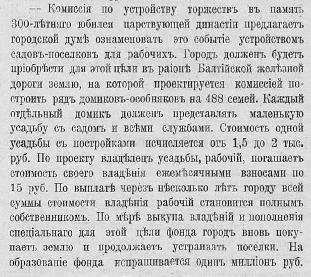 Открытие Гаванского рабочего городка состоялось в декабре 1906 года.