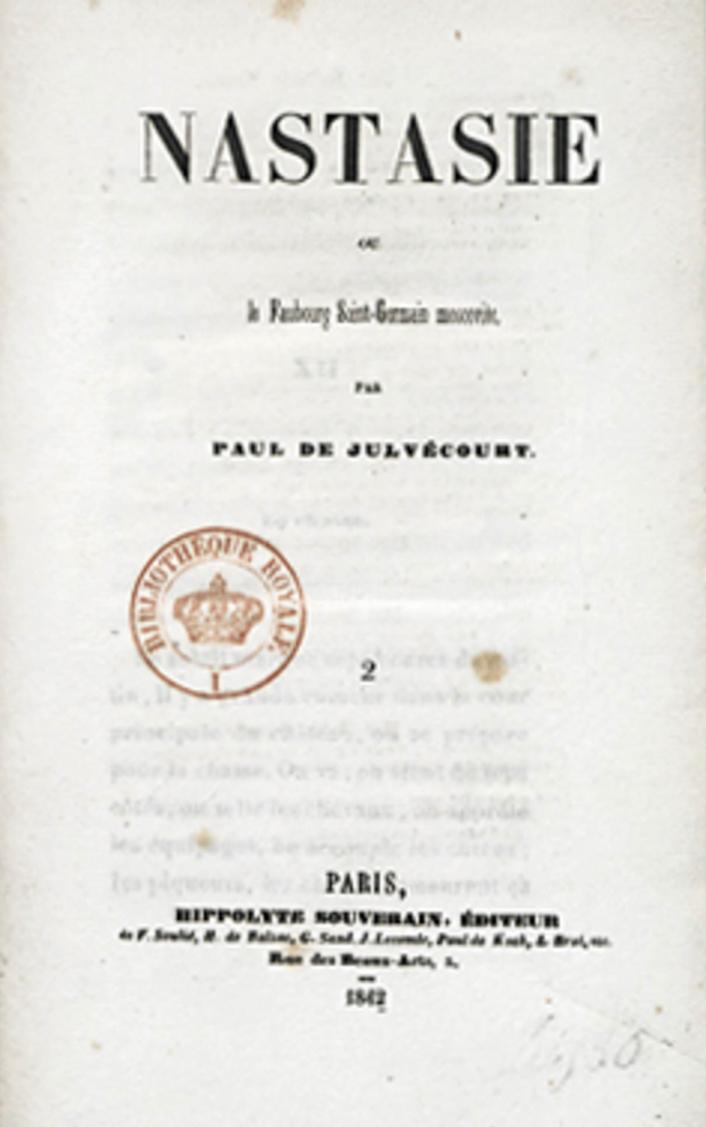 Спустя семь лет граф де Жюльвекур покинул Россию и вернулся на родину. Он попытался осмыслить свое путешествие и планировал написать четыре романа под общим названием "Московское предместье Сен-Жермен", то есть произведения о жизни русских аристократов в Париже. Однако успел опубликовать только две первые части: "Настасья" (1842) и "Русские в Париже" (1843).